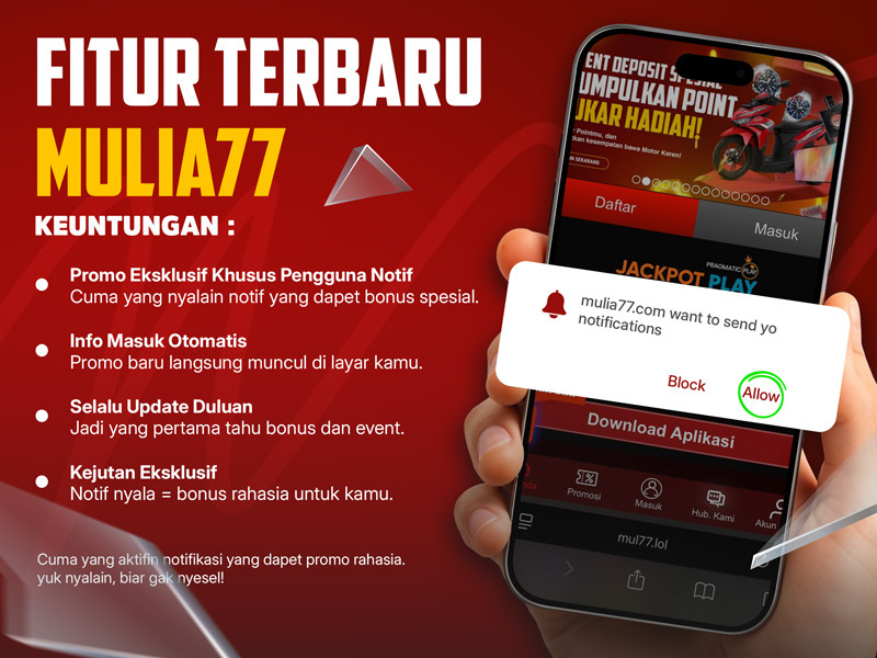 WELCOME TO MULIA77 DAPATKAN BONUS MERIAH YANG SUDAH KAMI SEDIAKAN UNTUK KAMU PLAYERS SEJATI KAMI. DEPOSIT MINIMAL 500 RB BISA MENDAPATKAN DOUBLE BONUS NEW MEMBER DAN HADIAH TANPA DI UNDI TIAP BULANNYA INFO LEBIH LANJUT BISA MENGHUBUNGI CUSTOMER SERVICE.
